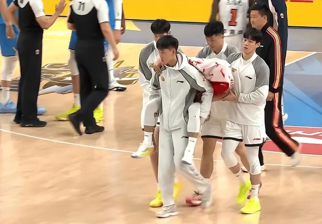 徐杰受傷是在第二節還剩4分多鐘的時候,在一次進攻中,徐杰在籃下附近被周琦意外撞倒,當時應該是頂到了膝蓋,壓到了腳踝,這直接導致徐杰受傷,倒地不起。看到徐杰受傷,趙睿和胡明軒第一時間過去查看,趙睿更是呼叫隊友進場,很快擔架車和醫生進場,隨著徐杰頭蓋毛巾,被隊友背離球館。