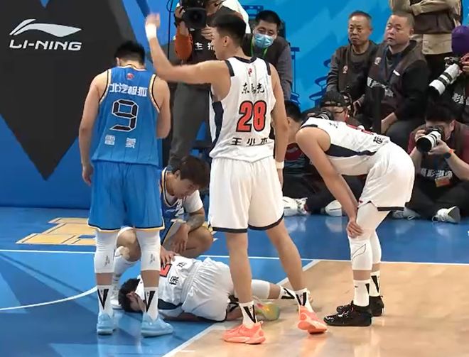 當然了,本場比賽,最終廣東球迷揪心的并不是輸了多少分,而是,球隊后場悍將徐杰的受傷,在比賽中,徐杰被北京隊中鋒周琦撞倒在地上,顯得十分痛苦,從慢鏡頭來看,周琦撞到了徐杰的膝蓋,這導致徐杰無法起立……