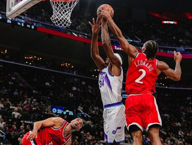 今天爵士很強,泰倫盧延續(xù)連勝的常規(guī)首發(fā),大洛,科林斯,倫納德,哈登和鄧恩。在硬實力上快船和爵士不是一個級別,首節(jié)快船就31-17領(lǐng)先14分。但第二節(jié)爵士開始起勢,半場追到只差3分。下半場,森薩博,威廉姆斯,李凱爾火力全開,爵士一度反超快船。就在絕命時刻,倫納德站了出來,他在第三節(jié)末尾和末節(jié),幾乎一己之力打崩了爵士。