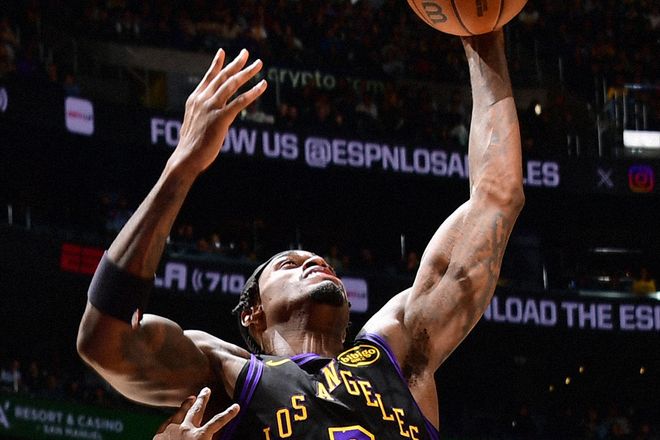 首先表態的,是中鋒海斯。一場比賽,襠部被對手肘擊兩次。不過這并未影響他的狀態,反而激發了他的斗志,這場比賽打得非常積極且高效。但要是說場上能量,今天的拉拉維亞確實是頂級,半場就9投7中獨得全隊最高的18分還有5個籃板。而他的發揮,也幫助湖人隊在第二節確立了兩位數的領先優勢。但好景不長,灰熊隊靠著整體更年輕的陣容,不斷追趕比分。所以總的來說,這場比賽湖人隊在進攻端并沒有占到太多的便宜。半場結束時,湖人隊只有著6分的領先優勢。而且下半場,湖人隊還沒反應過來的時候,就被灰熊隊打出一波流,直接追平了比分。