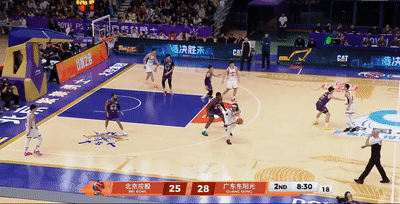 末節單外援決戰,薩林杰繼續先發!里勒飚進漂移中投,薩林杰助攻胡明軒空切得手,胡隊找到狀態再進一條龍突破,7分53秒薩林杰轉身上籃再造2+1,一波7-2廣東領先來到7分。