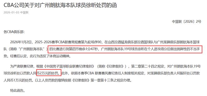 CBA常規賽目前進行到第10輪,在本輪前5場比賽結束后的北京時間1月3日深夜,CBA官方開出了本賽季針對球員的第一張的罰單,沒想到,一向不惹事也不犯事的老實孩子徐昕,成了第一個受罰對象,領到了2萬元的罰款。