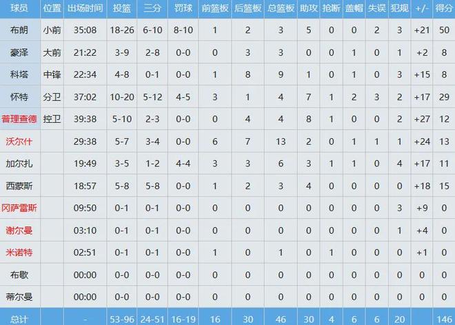 盡管很尷尬,可不能把輸球的鍋全部甩到祖巴茨身上,人家本場打的替補,快船全隊數據如下: