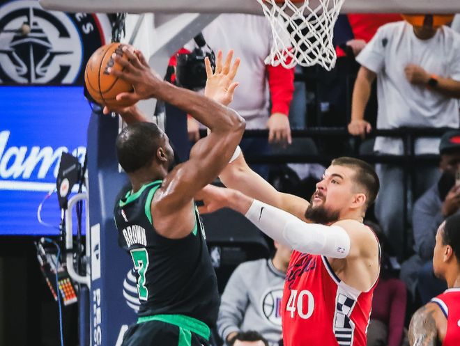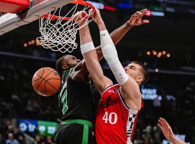 本場比賽快船有三個問題,第一,沒人搶籃板球。大洛佩茲確實能拉開空間,但是別指望他有穩定護框。而祖巴茨本場復出后,存在感更低,他確實在努力沖搶籃板球,但是進攻端完全沒有統治力,凱爾特人替補的加爾扎都能單防限制住祖巴茨,祖巴茨打得太軟了。籃板球比凱爾特人少了十幾個,直接導致二次進攻嚴重缺失。當然,如果比拼三分投射,快船更比不過凱爾特人,布朗和懷特猶如兩個三分投射機器,替補席還有安芬尼西蒙斯這個超級三分手,輕輕松松拉開分差。