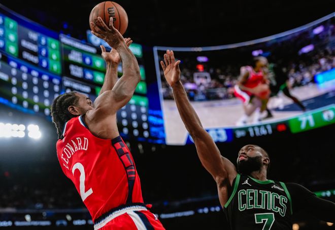 科林斯三分球三連擊,但懷特和杰倫布朗外線彈無虛發。后半段倫納德造殺傷+哈登突破上籃,節末小卡終于命中三分,半場快船63-71凱爾特人,科林斯獨砍20分,瓊斯13分,兩位角色球員頂住了壓力。進入第三節,倫納德和哈登輪流單打,凱爾特人的進攻就依靠杰倫布朗支撐,雙方分差維持在7分左右,陷入拉鋸戰。中段懷特三分球打破僵局,科林斯和鄧恩繼續上分!后半段倫納德造殺傷,哈登和布朗對轟三分球,瓊斯也下三分雨續上火力,但布朗太準了,帶隊又拉開15分分差。