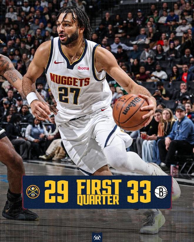 掘金上一場客場108-113惜敗騎士,籃網過去3場連輸勇士、火箭與奇才遭遇3連敗。本場掘金缺少約基奇、卡約、瓦蘭丘納斯,籃網缺少克拉克斯頓、海史密斯。掘金迎來戈登與布勞恩復出,波特也復出對陣舊主,首節前半節雙方纏斗至14-14,籃網一波9-2攻勢取得領先優勢,戈登替補復出幫助掘金縮小差距,首節比賽結束掘金追到29-33落后籃網4分。