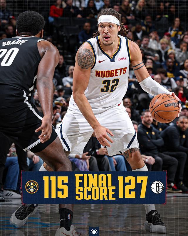進入第四節比賽,掘金繼續被籃網壓制逐步以90-112落后22分差距,比賽已經提前失去勝負懸念。掘金反撲有所追分,但已經無力扭轉局勢,最終掘金115-127輸給籃網遭遇2連敗。