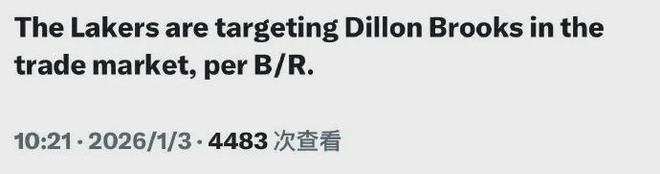 美媒YahooSports對此表示,湖人正與太陽商討一筆交易,打算送出八村塁+克內克特+一個首輪簽,從而換來狄龍。