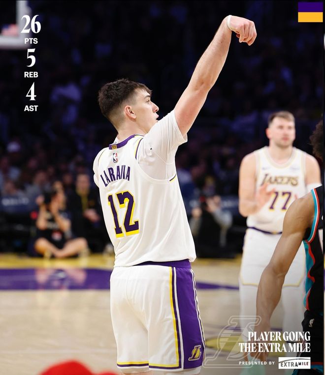 詹姆斯在談到拉拉維亞出色的表現時表示:“很顯然,在缺少AR(里夫斯)、八村塁和文森特的情況下,我們需要有人能時不時地爆發式得分,杰克(拉拉維亞)的挺身而出對我們至關重要,他現在打出了極強的自信。”