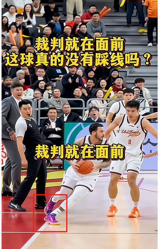 這3分變2分,直接影響后面比賽的走勢。而接下來浙江男籃在執行最后一攻時,約克持球已經踩線,但就在一旁的裁判卻熟視無睹,要知道約克踩線這一幕就發生在裁判眼皮底下,剛剛陳家政距離裁判那么遠,如此牽強的“踩線”裁判都能看見,這球為什么就完全當無事發生呢?杜鋒賽后追著裁判投訴,就是因為他和裁判一樣,都在旁邊看的清清楚楚,但裁判卻仍然沒有任何表示。