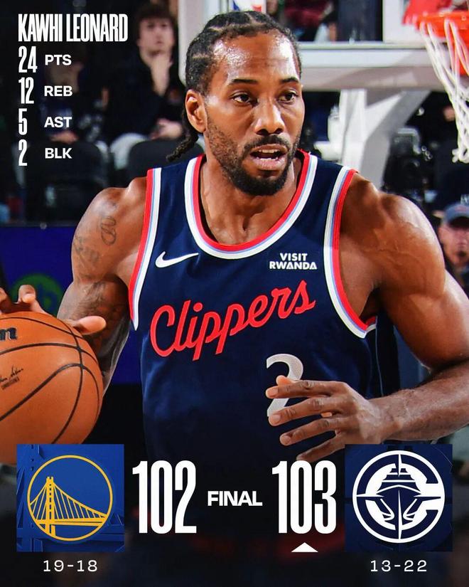 小卡24+12庫里27分 快船險勝勇士