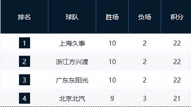 12輪戰罷,上海、廣廈和廣東三支球隊以10勝2負的戰績并列榜首,其中上海隊憑借八連勝的強勢表現暫時占據頭名位置。這三支球隊展現出的穩定性令人印象深刻,上海隊在擊敗青島的比賽中展現出強大的整體實力,廣廈和廣東則通過關鍵勝利鞏固了爭冠集團的領先優勢。