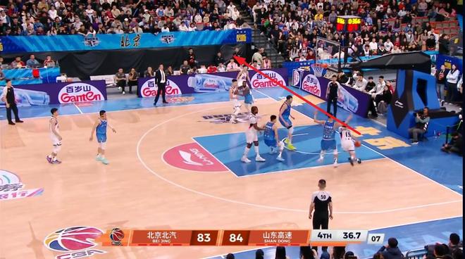 第二次,比賽進行到還剩53.7秒時,北京北汽男籃球員雷蒙傳球失誤,被山東男籃球員陳林堅搶斷后,傳給于德豪,于德豪再回傳阿林堅。陳林堅又傳給謝智杰,謝智杰壓了一下節奏后,再傳給于德豪。此時,離比賽結束還有39.1秒。于德豪接球后,面對翟小川的防守。突然加速直奔籃下,本以為他要強行上籃,卻見他直接把球扔向了北京男籃的替補席。這一名場面,把山東男籃外籍主教練驚得目瞪口呆,嘴里也是念念有詞。而坐在觀眾席的于德豪的前隊友趙睿,則是使勁憋著笑。