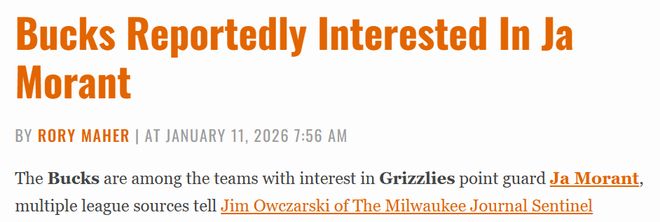 北京時間1月11日,據雄鹿隊記吉姆-奧瓦爾斯基透露,雄鹿隊是有意追求孟菲斯灰熊隊控衛賈-莫蘭特的球隊之一。這是首份明確將雄鹿隊與身處交易市場的莫蘭特聯系在一起的報道。
