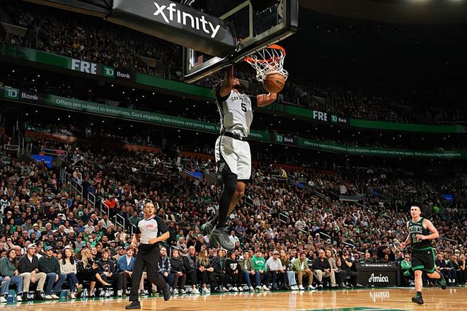 本場比賽中,雖然馬刺取得了比賽的勝利,但是球隊的先發后場新星斯蒂芬-卡斯爾(Stephon Castle)的表現算得上是令人大跌眼鏡。卡斯爾全場出場26分36秒,投籃16中3,三分線外7中1,罰球5中2,得到了9分2籃板5助攻2搶斷的數據,還有2次失誤,正負值也是低到了全隊最低的-7。卡斯爾在進攻端其實得到了大量的出場時間和出手機會,然而他的進攻效率一塌糊涂,外線投籃手感糟糕透頂,而且他在進攻選擇方面也是存在著明顯的問題的,顯得有些上頭了,浪費了大量的機會。卡斯爾在防守端的表現還算中規中矩,但是這也沒有辦法改變他在進攻端給球隊造成的巨大負面影響。最后時刻卡斯爾沒有出現在球場上,這反而是馬刺能夠穩住局面并且拿下勝利的關鍵因素。