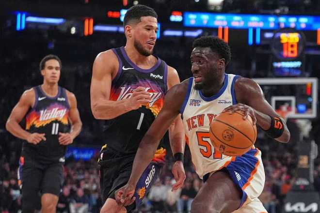 尼克斯過去兩場連續客場輸給國王與勇士遭遇2連敗,太陽過去兩場連續客場惜敗熱火與活塞遭遇2連敗,本賽季首次交鋒太陽主場112-107戰勝尼克斯。本場太陽缺少杰倫-格林,尼克斯缺少哈特與布倫森。首節開局太陽6-3領先,尼克斯一波10-0攻勢反超比分,太陽持續反撲逐步追到14-17僅差3分。尼克斯連得5分擴大優勢,太陽繼續被拉開差距,首節比賽結束太陽19-27落后尼克斯。首節太陽22中8,其中三分11中3,布克7中3得到7分2助攻;尼克斯18中9,其中三分7中4,唐斯7分4籃板。