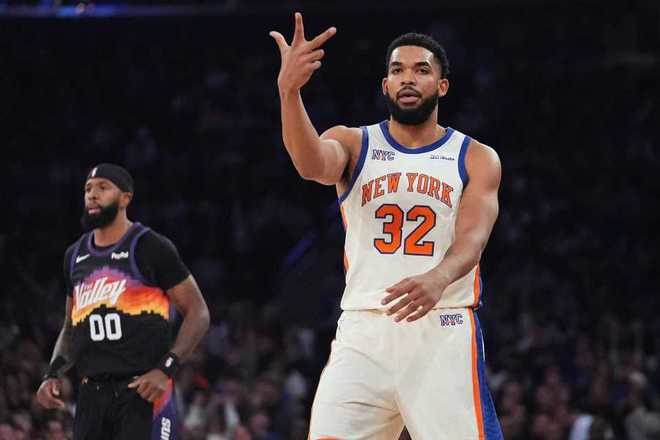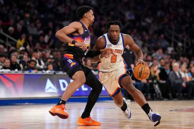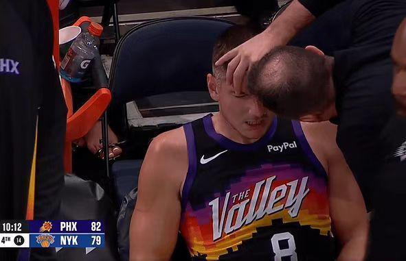 進入第四節比賽,雙方持續緊咬比分纏斗至87-87,阿倫與阿奴諾比相撞后鼻子受傷下場治療,伊戈達羅也鼻子受傷塞著棉花。太陽內外開花一波8-0攻勢取得領先,奧尼爾三分命中擴大98-89領先優勢,雙方隨后連續造犯規罰球得分,太陽擴大102-92領先。布里奇斯三分與麥克布萊德拋射追到差5分,馬威內線命中,雙方隨后接連打鐵不中。馬威被犯規兩罰不中,唐斯暴扣追分,阿倫被犯規兩罰全中擴大7分優勢,尼克斯已經無力扭轉局勢,最終太陽逆轉戰勝尼克斯。