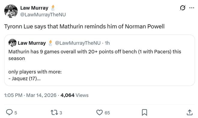 全場他替補出戰28分鐘,19中10,拿下26分6板2助1搶斷,在加盟快船僅出戰14場比賽的情況下,已經8次以替補身份轟下20+得分表現,末節更是一人獨攬13分展現亂戰得分高手底色。