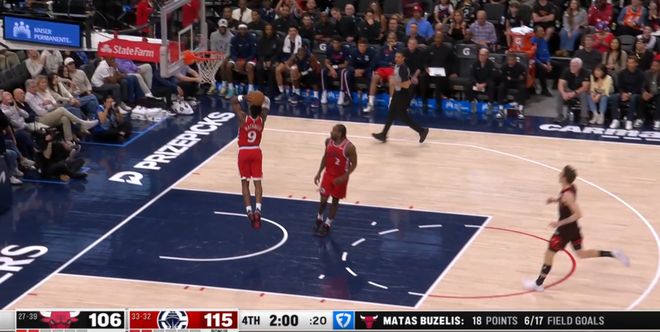 ——對陣尼克斯,28分7籃板1助攻,投籃20中9