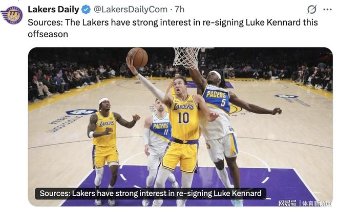 于昨日”湖人日報“發布了一篇報道,其標題為”據消息源透露:湖人隊對續約肯納德興趣盎然“。報道全文內容如下: