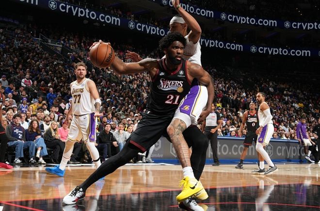 但是,作為一名中鋒,兩項(xiàng)命中率低至49%+31%,說不過去!此外恩比德本賽季防守BPM值,球隊(duì)第14位,屬于拖后腿的那個(gè)。進(jìn)攻端他還能依靠一些背打和出手次數(shù)維持產(chǎn)量保證,但防守端確實(shí)跳不起來了,對(duì)抗也很吃力了。之前打湖人有一幕讓我印象深刻,海斯對(duì)位防守恩比德,恩比德頂了兩下,轉(zhuǎn)身往籃下沖,直接被懟出去了!他也就能欺負(fù)一下申京。更尷尬的是,本賽季恩比德還保持著33.8%的球權(quán)占有率,聯(lián)盟第三!作為一名中鋒,因?yàn)樗拇蚍◣韲?yán)重傷病,可是他一直沒有改變!