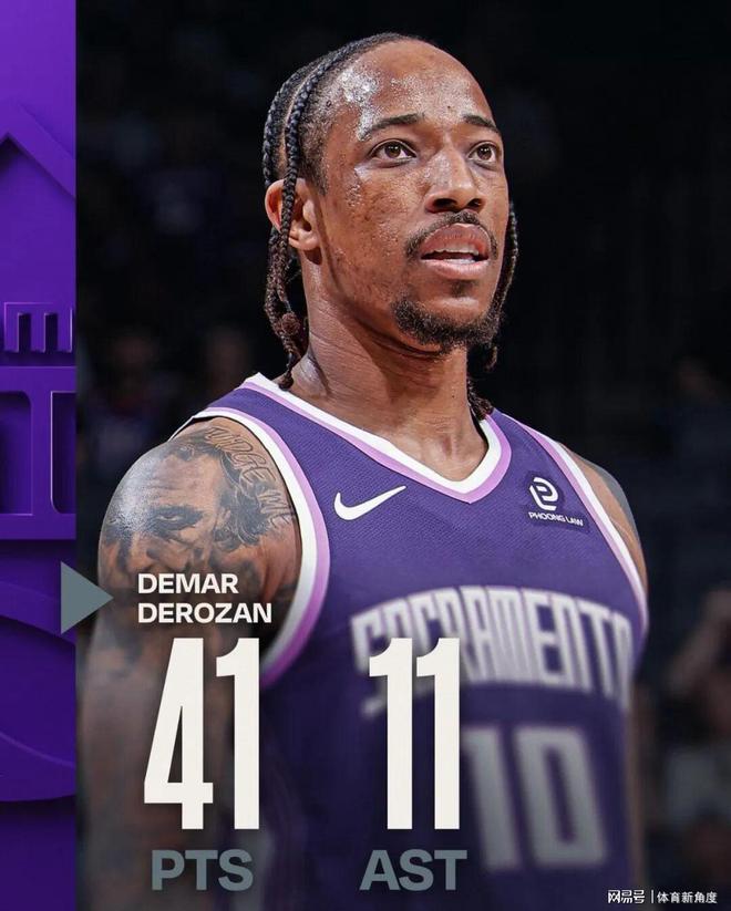 在沉默中,德羅贊爆發了。過去三場比賽場均38.5分鐘,轟下35.7分8.0助攻,投籃命中率高達68.4%。連續刷新兩項超級紀錄。