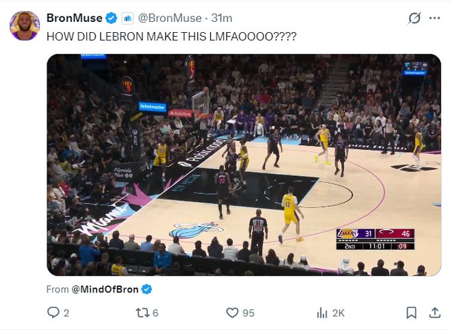 半場詹姆斯5中5,拿到11分3籃板2助攻,命中率100%,41歲的詹姆斯連續兩個上半場保持全中!