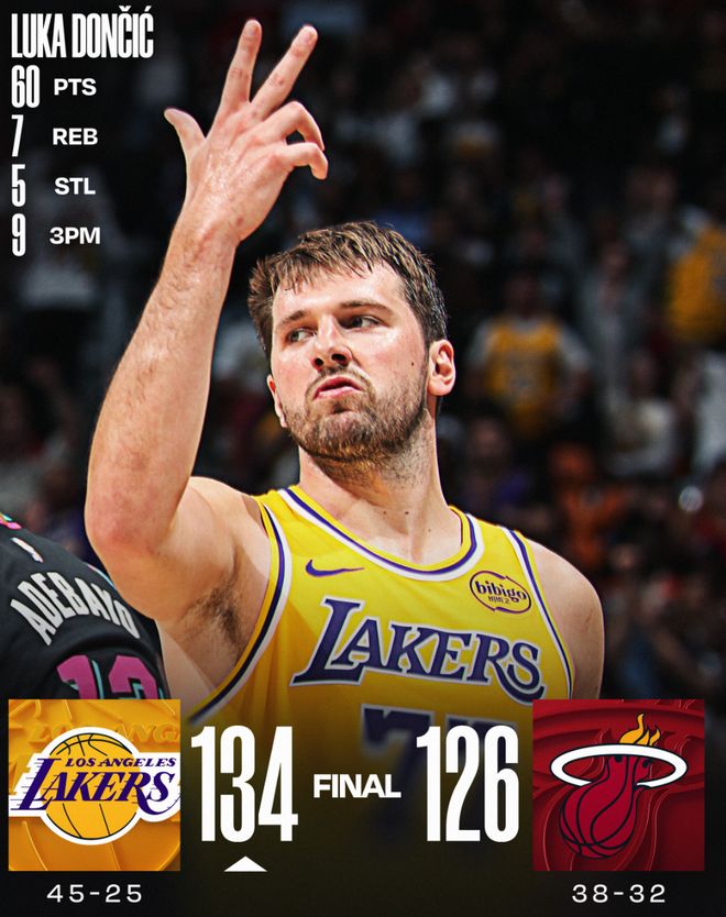 北京時間3月20日,湖人134-126逆轉(zhuǎn)熱火拿到8連勝,最近的11場比賽湖人贏下了其中的10場。湖人與森林狼拉開到2個勝場,湖人與火箭、掘金則拉開3個勝場,湖人近期的狀態(tài)實在是太好了,東契奇拿到60分9個三分5搶斷迎來蓋世夜晚。