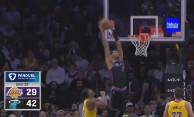 然而熱火(場均回合數104.7高居聯盟榜首)絲毫不給面子,憑借本賽季最快的進攻節奏,首節打了湖人42-29攻擊波。
