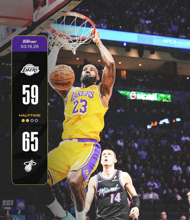 次節湖人回應了30-23,但上半場依然59-65落后。