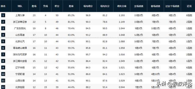 截止目前,廣東男籃的戰績為19勝8負,排在積分榜第3位。
