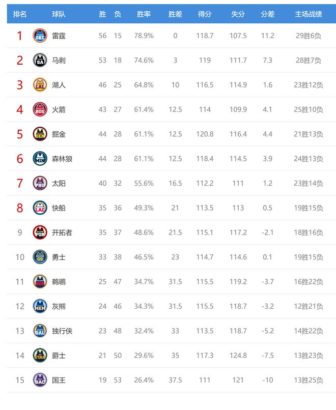北京時間2026年3月23日,今日NBA有5場比賽,掘金、森林狼、太陽、開拓者、國王參與其中,賽后西部排名有什么變化呢?