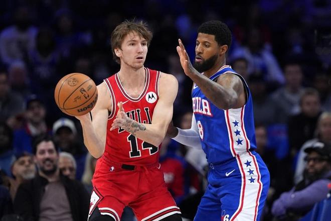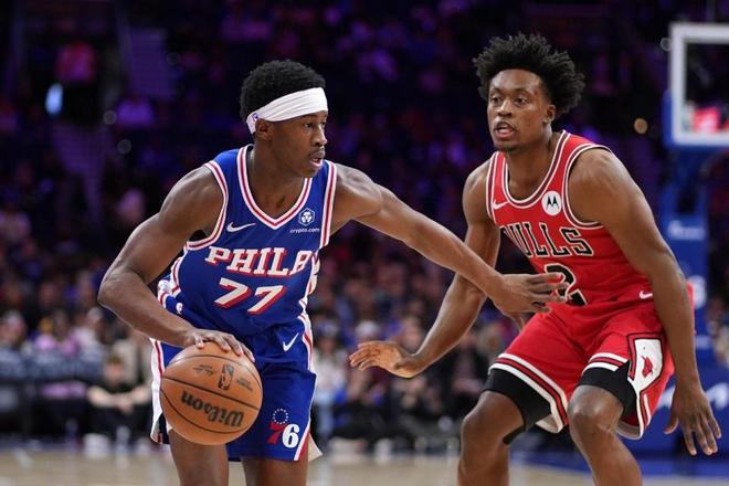 76人上一場主場103-123輸給雷霆,公牛上一場主場132-124戰勝火箭,本賽季前兩次交鋒76人均客場輸給公牛。本場76人缺少馬克西、烏布雷,公牛缺少艾維、河村勇輝、科林斯。首節開局,恩比德內外開花率隊取得14-7領先優勢,公牛反撲追到差2分。76人逐步拉開到31-21領先,公牛連追5分,76人一波7-0攻勢擴大優勢,首節結束76人38-26領先公牛。首節公牛三分13中2,全隊沒有球員得分上雙;76人三分11中6,恩比德9中6命中3記三分得到15分與埃奇庫姆11分,喬治2中0得到0分。