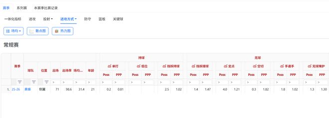 他的賽季三項降準分別為-6.3、-3.2和-2.4,場均干擾投籃5.2次,破壞球1.9次。不僅防守積極性拉滿,防守效果也不比隊內前輩差。哪怕是和聯盟其他精英側翼防守悍將比克尼佩爾的防守數據也夠看。