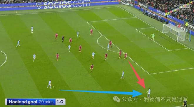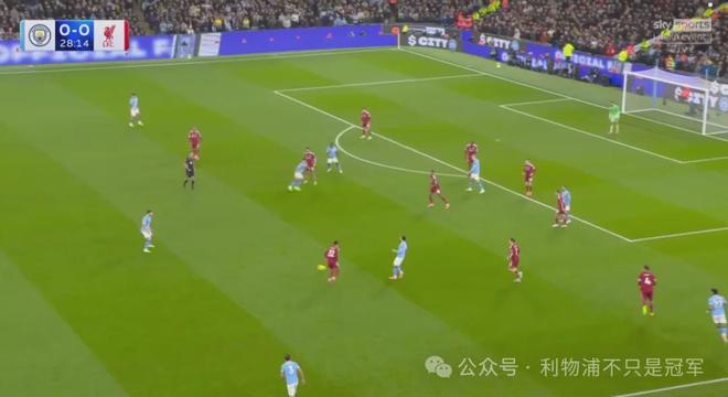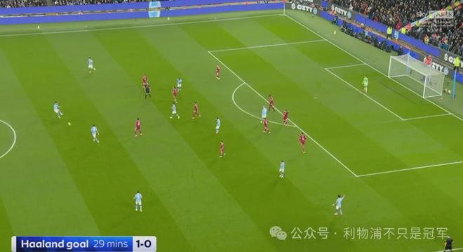 哈蘭德進(jìn)球的時(shí)間是28分30秒。在此前1分鐘,也就是27分30秒左右,利物浦還在前場(chǎng)逼搶,一度將曼城逼到自己的角球區(qū),但曼城球員通過(guò)連續(xù)短傳配合,輕松瓦解了利物浦的前場(chǎng)逼搶,并很快轉(zhuǎn)入反擊。