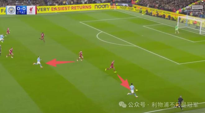 曼城27分50秒左右反擊到利物浦左路,由于盯防切爾基的羅伯遜被拉到中路,而曼城攻擊到利物浦左路時(shí),左中衛(wèi)范迪克被迫補(bǔ)防到左后衛(wèi)位置,這是曼城本場(chǎng)針對(duì)利物浦的戰(zhàn)術(shù)之一,就是要讓范迪克離開(kāi)利物浦中路!