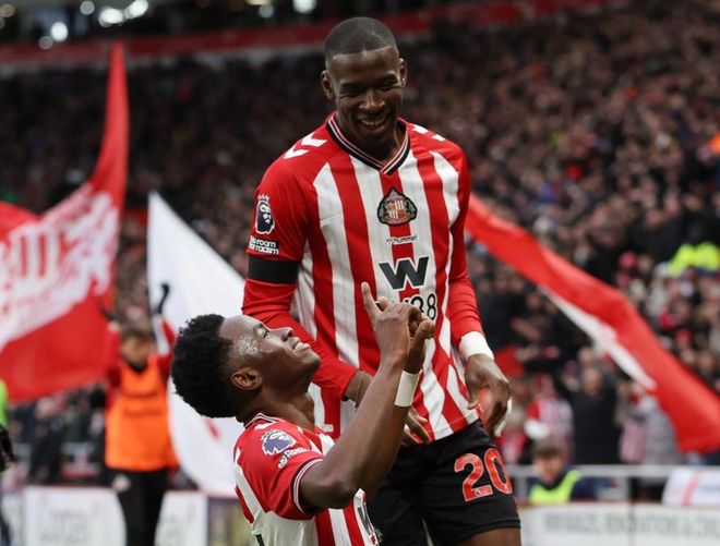 桑德蘭排出4231陣型。布羅貝伊頂在最前面。克里斯-里格、勒費埃和阿丁格拉的進(jìn)攻組合聯(lián)袂出擊。扎卡和海特勒伊達(dá)組成雙后腰。穆杰萊、西爾金、阿爾德雷特和休姆4后衛(wèi)首發(fā)出戰(zhàn)。羅埃夫斯擔(dān)任首發(fā)門將。