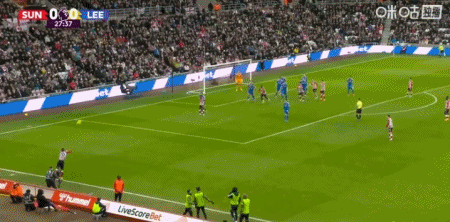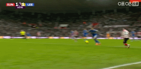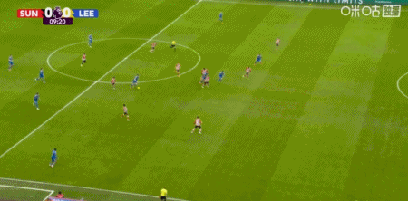 第28分鐘,扎卡斜塞,阿丁格拉兜射破門,桑德蘭1-0利茲聯