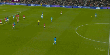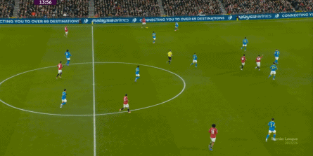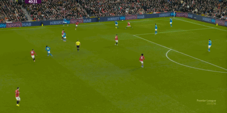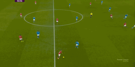 突前的中鋒更多時候都在跑位,右手側的隊友則不擅移動,只能在空間充裕的時候展現一些技術特點,那么曼聯的右半扇就幾乎可以不用指望。