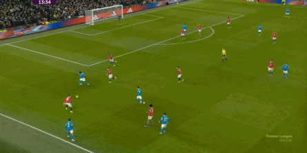 也能通過捕捉曼聯的失誤,吃掉庫尼亞之后,從右路繼續送出傳中: