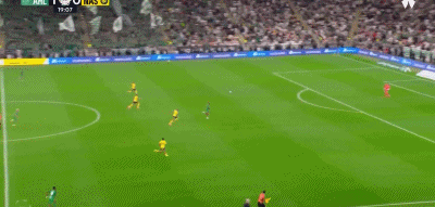 連丟2球后利雅得勝利才如夢初醒,第32分鐘,阿姆里禁區外圍轟出一腳大力遠射,桑比意外撲球脫手不慎將球漏進球門,1:2!第42分鐘,阿姆里右路斜線傳中,C羅門前頭球擦著橫梁出界;第44分鐘,布羅佐維奇角球旋入禁區,阿姆里頭球破門同樣上演梅開二度,2:2!半場結束前,還是加萊諾左路的突破橫傳,托尼打門擊中立柱差點上演帽子戲法。