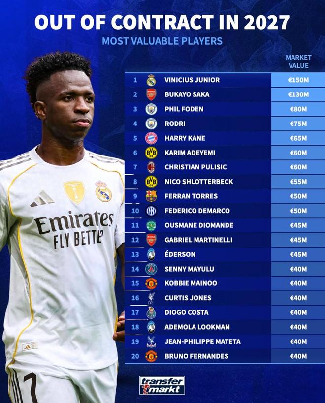 1. 維尼修斯(皇家馬德里) 1.5億歐元