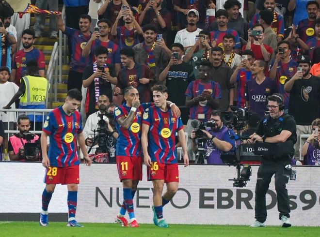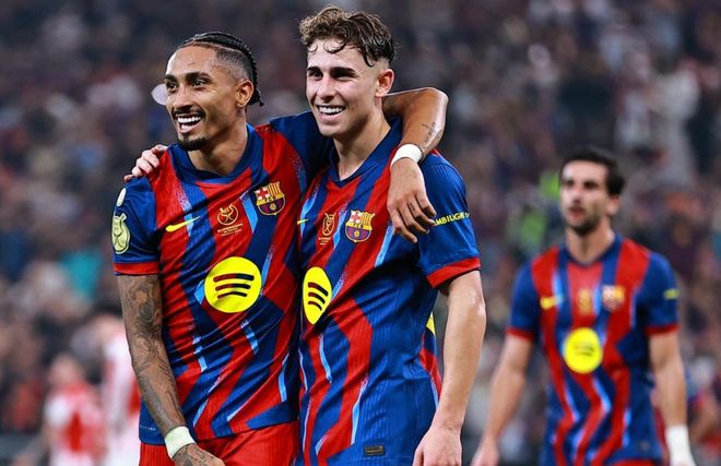 弗里克真是神了,竟然讓巴薩在半決賽踢出如此殘暴的比分。巴薩創造歷史神跡:這是西班牙超級杯歷史最大比分勝利!拉菲尼亞、費爾明和巴爾德吉組成的1.6億進攻組合大爆發,他們3人都獨造3球。拉菲尼亞2進球1助攻,費爾明-洛佩斯1進球2助攻,巴爾德吉也是1進球2助攻。