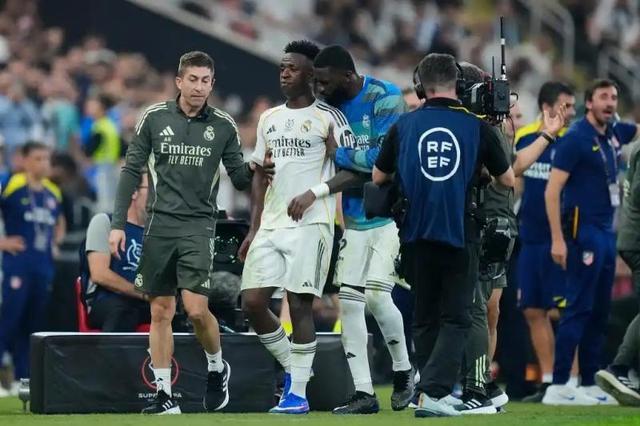 西班牙超級(jí)杯半決賽,馬德里競(jìng)技對(duì)陣皇家馬德里。上半場(chǎng),巴爾韋德超級(jí)世界波得手。易邊再戰(zhàn),羅德里戈建功,瑟爾洛特破門。第80分鐘,維尼修斯被換下,走到場(chǎng)邊的他和馬競(jìng)主帥西蒙尼爭(zhēng)吵,這引發(fā)了雙方在場(chǎng)邊的一些小爭(zhēng)執(zhí)。隨后維尼修斯和西蒙尼也因此雙雙吃到一張黃牌,最終皇馬2比1勝馬競(jìng)晉級(jí),連續(xù)4個(gè)賽季與巴薩在西超杯決賽中相遇。