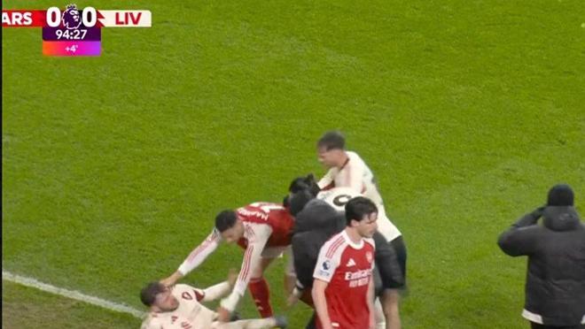 阿森納對利物浦比賽中爆發(fā)爭議一幕:馬丁內(nèi)利行為引眾怒
