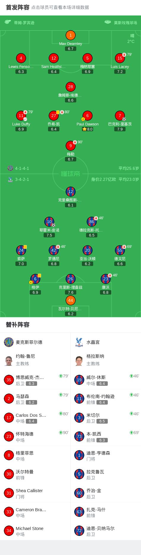 第43分鐘,道森搶點破門,麥克斯菲爾德1-0領先衛冕冠軍水晶宮!